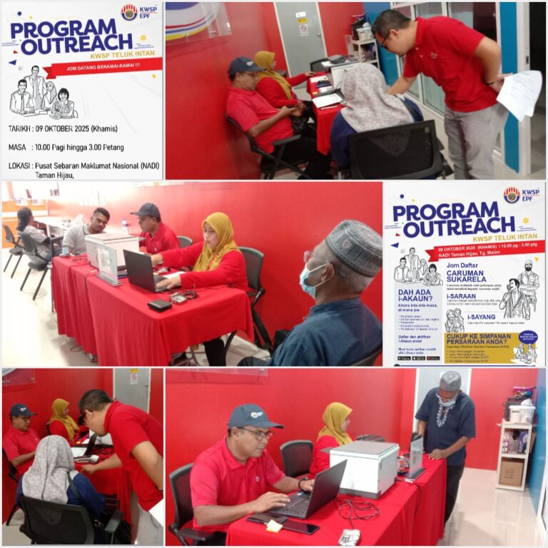 Tarikh : 09 Oktober 2025 (Khamis) Masa : 10.00 pagi – 3.00 petang Lokasi : NADI Taman Hijau Peserta : 7 orang Tujuan NADI Taman Hijau Tanjung Malim telah mengadakan Program Kaunter Bergerak KWSP (EPF) untuk memberikan kemudahan kepada komuniti […]
