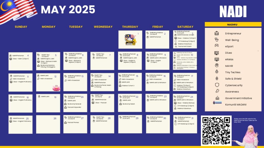 Jadual Aktiviti dan Perkhidmatan Pintar di NADI Taman Hijau sepanjang bulan MEI 2025